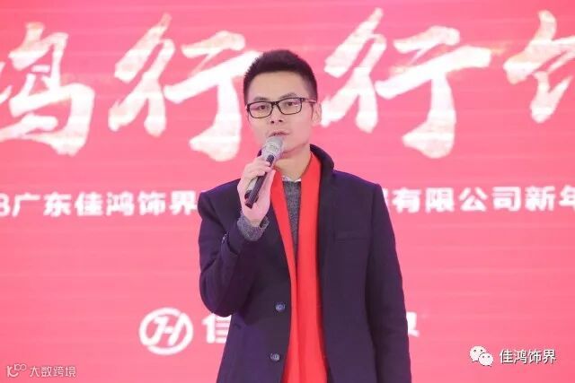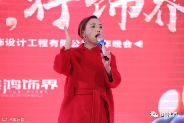 接下来是佳鸿人的女神-肖总裁说道:感谢每一位来参加佳鸿年会的各位亲友,2017取得这么好的成就离不开各行各业的支持与肯定,肖总裁表示在新的一年里佳鸿饰界将不断拓展新的版图拿下更耀眼的成绩!2018逢山开路,遇水搭桥,我们一定交出更加完美的成绩单!