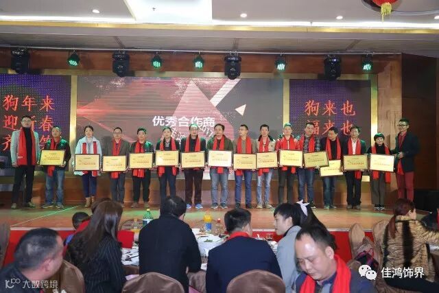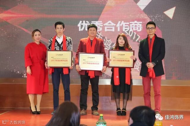 恭喜以上获奖的同事,2017年除了涌现我们优秀的同事及团队以外,其实对于佳鸿饰界来说这一年能取得这么好的成绩是离不开供应商们的大力支持与信任的,当天也对我们的优秀供应商进行了颁奖肯定。