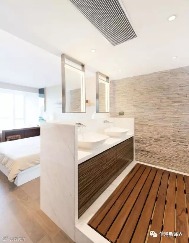 洗簌间运用木色的家具,简约而又大气,给人以纯释自然的释放空间。