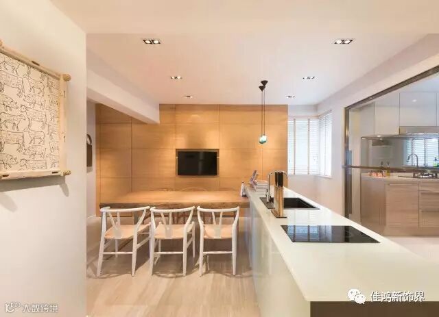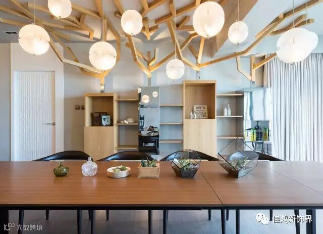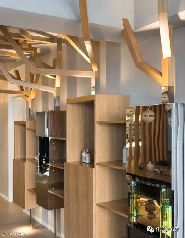 原木,一个朴实生态的元素,当它融入纯白色的现代空间中,给单调的现代空间加了一抹自然朴素的亮色,简单却不繁琐,诠释着自然古朴的韵味。