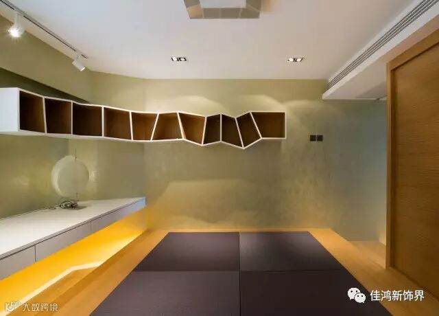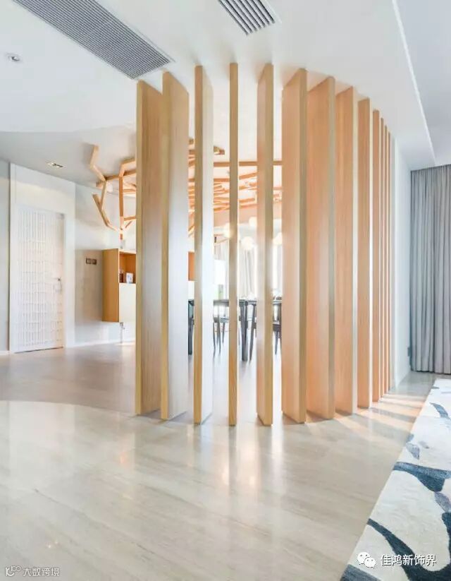竖条纹的原木色隔断在空间中显得端庄而不失雅气,整体的搭配使得空间充满宁静致远的气息。