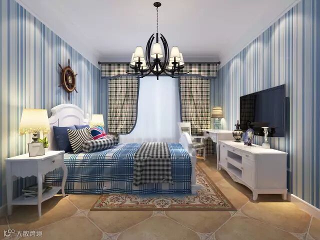 蓝色系和白色系的墙漆搭配,让整个房间都多了一定的温情风。元素不在于多而在于精致,将地中海风格元素表现的淋漓尽致。