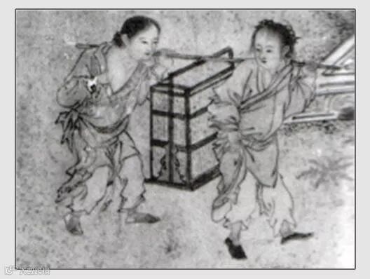 从文献和图材料来看,它在宋朝时期已经流行,主要用以盛放酒食,便于出行。只不过有竹制,有木制。在明人绘《麟堂秋宴图》中便有两人扛杠箱而行。