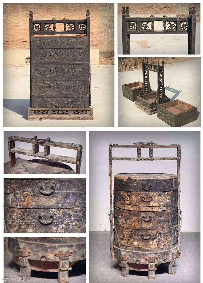 其实,这杠箱在古代也是一种实用性非常强的家具。它既可以在平时盛放酒食送到别的地方。又是送礼的重要之运输工具。如,谈婚论嫁时,这聘礼是得放到杠箱中,杠箱用红绸包装好,两人前后扛着,浩浩荡荡的行走在大街上,这也是对姑娘家莫大的尊重。喜庆之意,尽在其中。然,民间最常有用“食萝”也叫大食盒。其实这食萝也就是杠箱的简易版,做工比较简易,屉多以圆形居多。