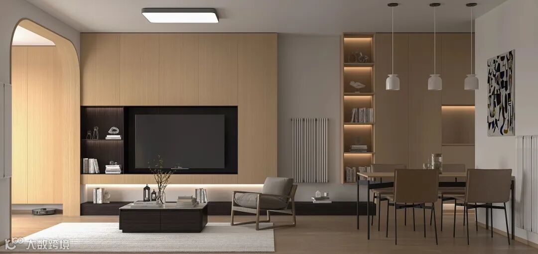 现代简约风格简单而实用,电视背景墙整体线条设计上以清晰硬朗为主,原木色调,将温馨休闲舒适的生活状态在内心得以完美诠释。