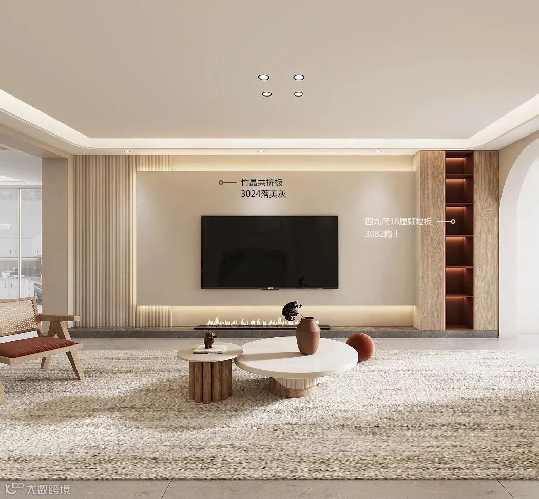恬静落英灰和暖色3082陶土邂逅,以现代简约的电视背景设计勾勒空间格调,对简约生活的追求在每一处细节体现,日落余晖的生活感,随心自由,清新而治愈。