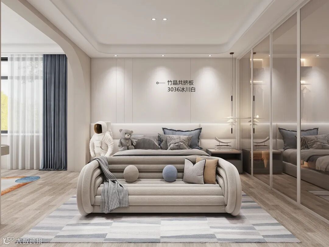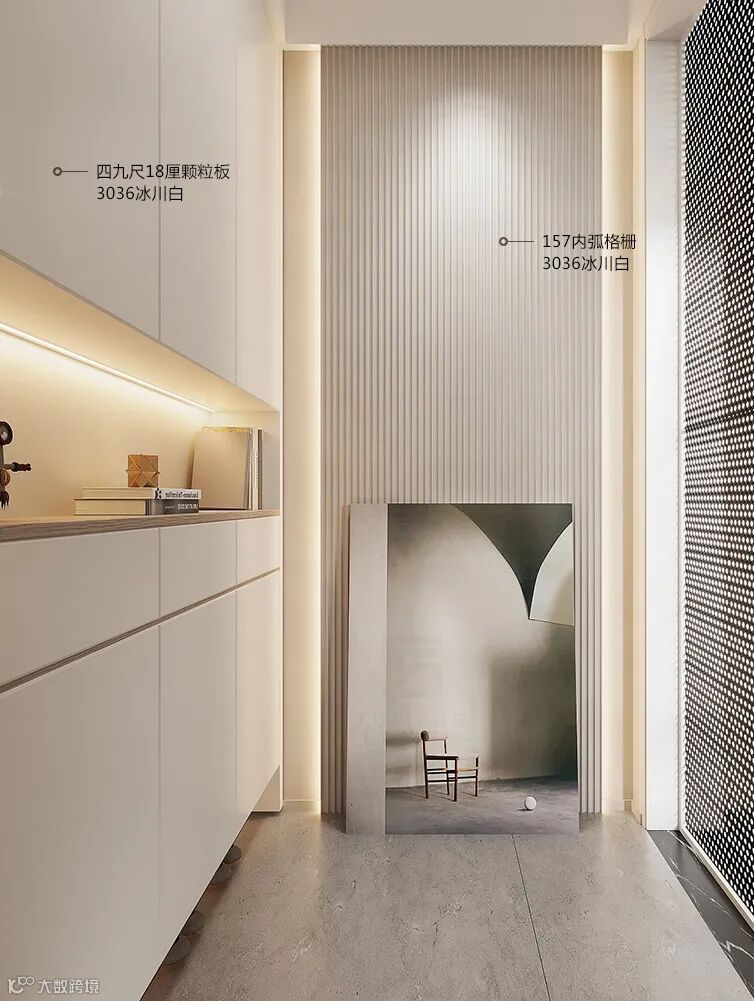 3036冰川白系列以白为基调,呈现柔和细腻,明亮干净和简约的色调,理性、克制,大气、包容,将居者从生活的繁杂中解脱出来,营造高级的视觉享受。是永不过时的高端审美,让居者即使身处喧嚣俗世,亦能觅得一方宁静。