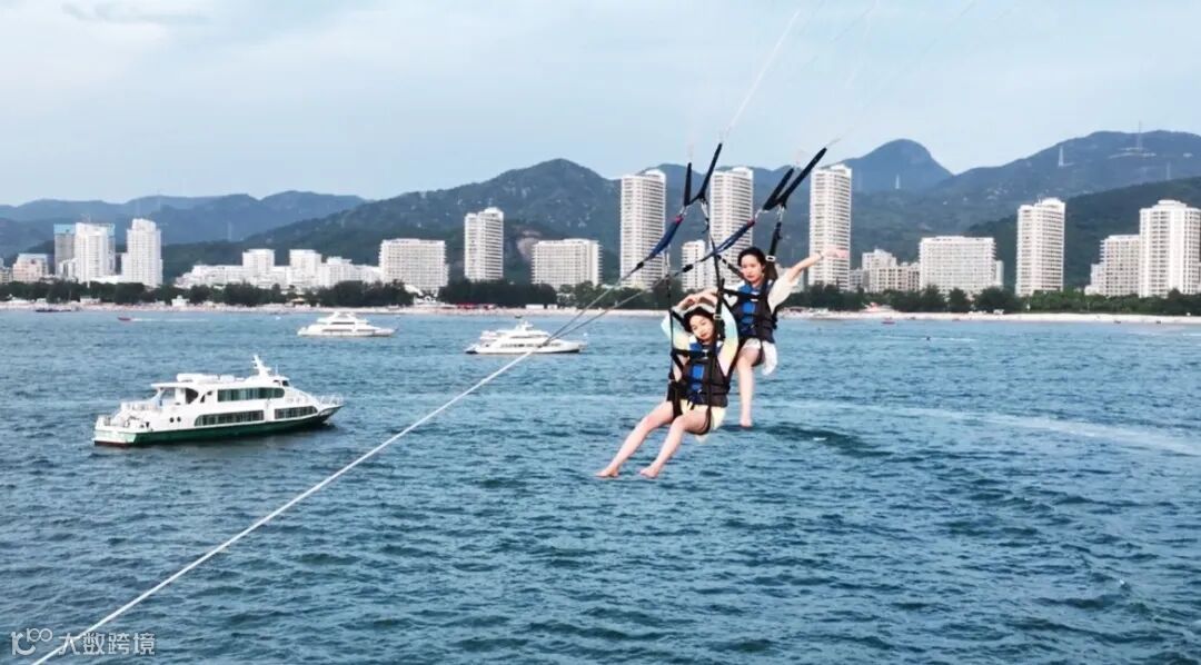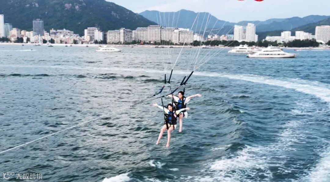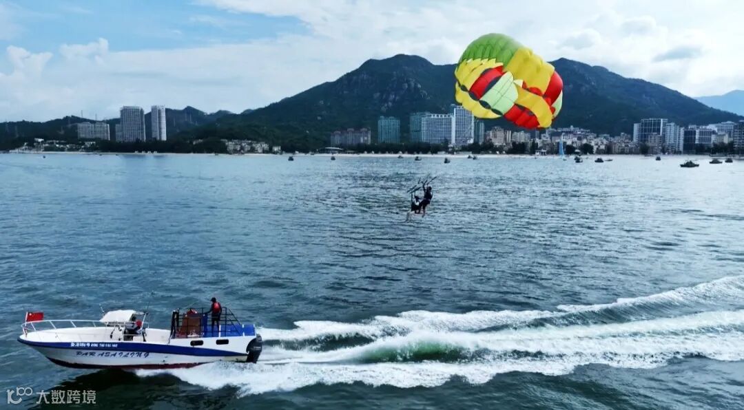 海边戏水踏浪、游泳、挖沙、摩托艇、滑翔伞……