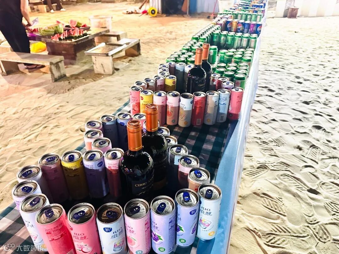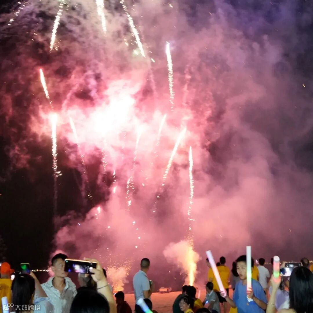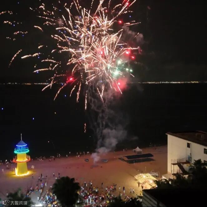 海风、音乐、红酒饮料、烟花……