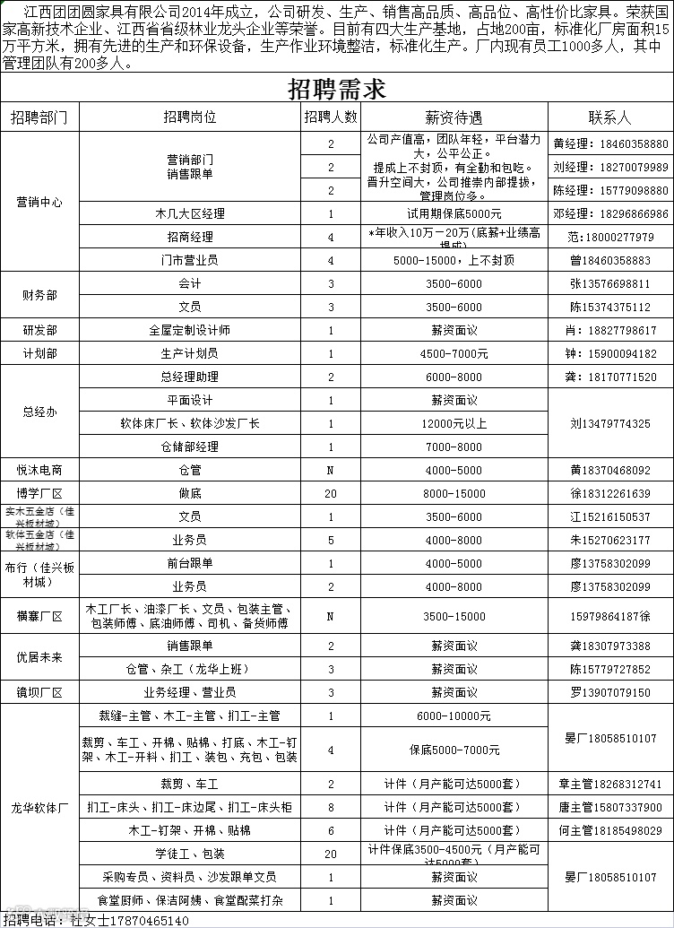 赣州九一人才网搜索:江西团团圆家具有限公司