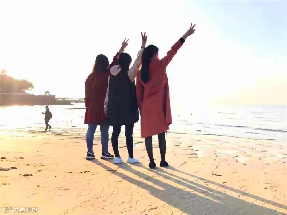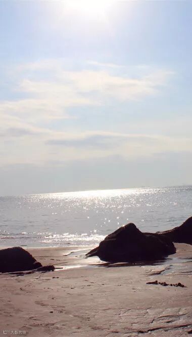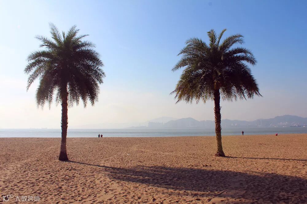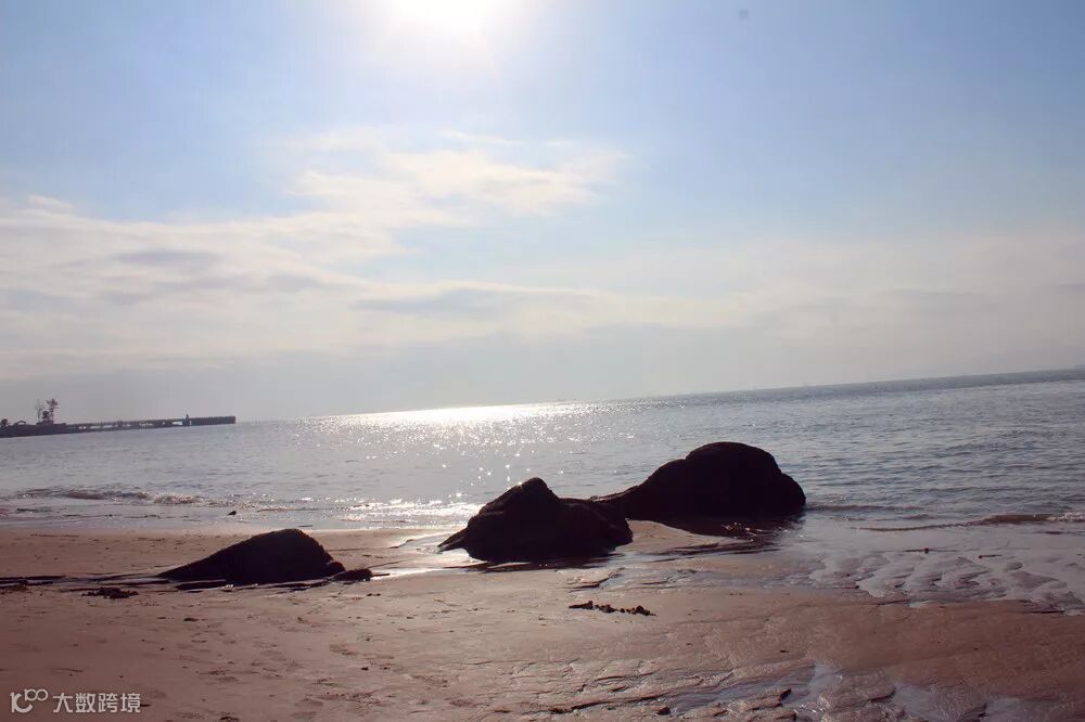 走上海滨浴场吹吹海风踏踏浪花
