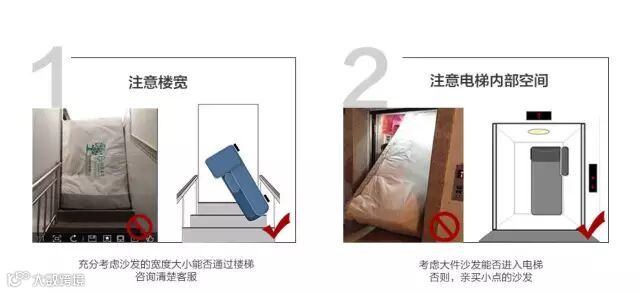第三关是电梯、步行梯,住在一楼以上的朋友都要考虑这一问题,包括电梯内部的长宽高和步行梯半层位置的转角空间。