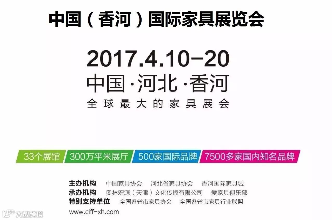 2017年4月10日至20日,由中国家具协会、河北省家具协会、香河国际家具城主办的,中国北方最大的家具展——中国(香河)国际家具展览会将在香河举办。