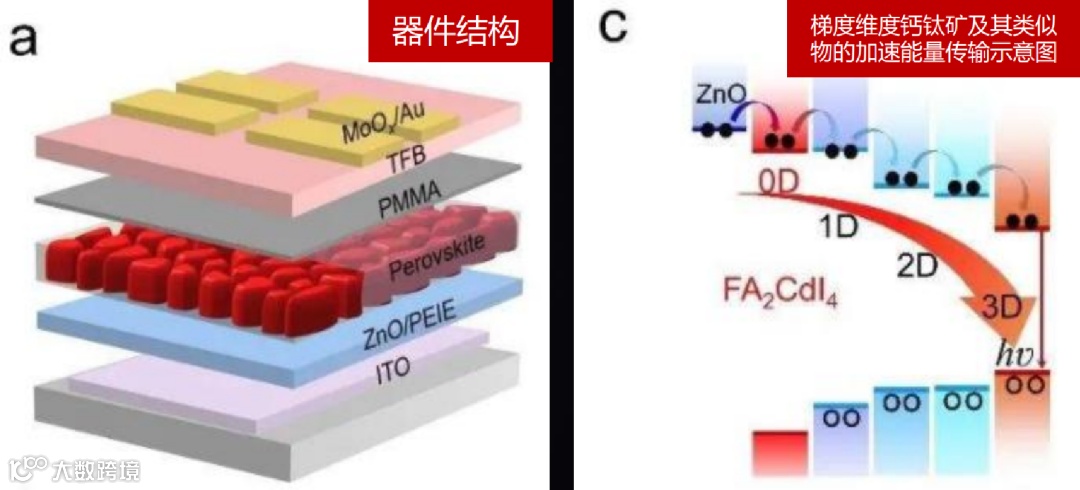 此外,镉盐还生成了一种新型零维晶体结构的类钙钛矿材料(FA2CdI4),其梯度排列的能带结构可以像能量漏斗一样高效地传递载流子,对能量转移中起着非常关键和积极的作用。