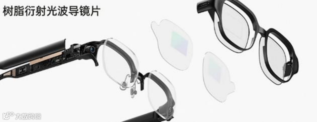 采用树脂波导镜片,支持视力修正,近视用户可以定制自己的度数,还可制作成墨镜形式;可用于信息提示、地图导航、语音翻译、提词器等场景。