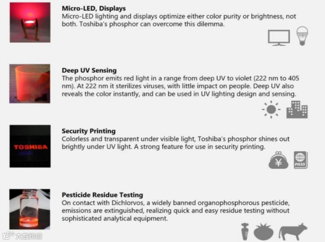 这些特性在LED照明、显示器、深紫外线传感、安全印刷和农药残留测试等领域开辟了许多潜在应用。