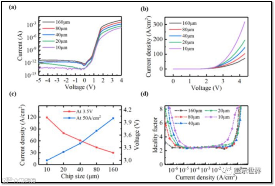 b:不同芯片尺寸电流密度