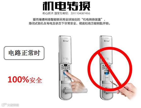 在有电情况下,只能用指纹、密码或者感应卡开锁,机械钥匙孔失去功效,小偷通过钥匙孔不但不能打开且还会现场报警。