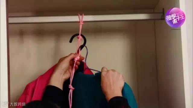 有了这个连环绳结,衣服叠挂在上边,可以单独取放,十分方便!▽