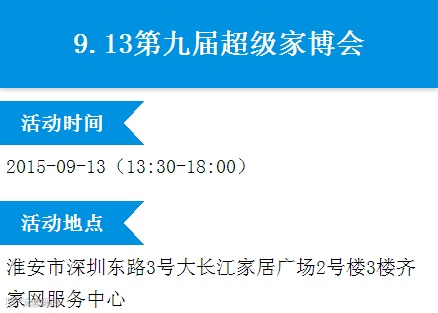 《9月13日第9届超级家博会 》齐家网限时放血大补贴!1元开关、36元瓷砖、59晾衣架、99马桶、199花洒、299水晶灯、399热水器、499木门、999厨电!赶紧报名啊!