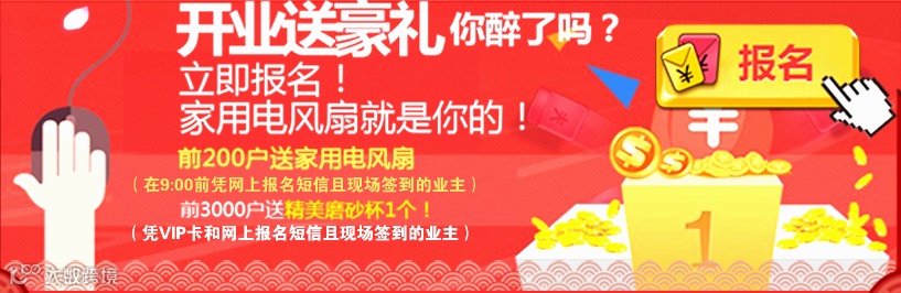 导读:明天就是活动开始的日期了~~~1签到礼前200户送家用电风扇(凭网上报名短信+现场签到的业主)前3000户送