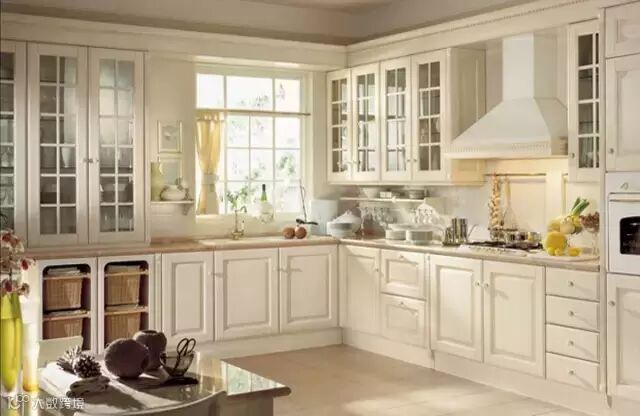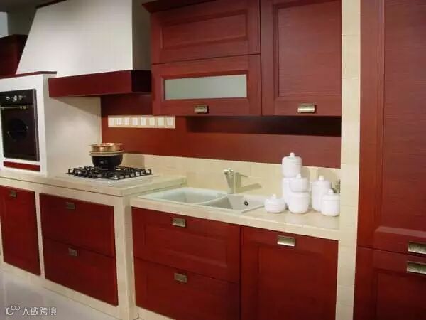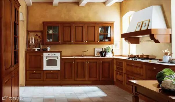 古典风格橱柜多采用实木门板,木材多用胡桃木、樱桃木、橡木、松木等,门框为实木门芯为中密度板贴实木皮,一般在实木表面做凹凸造型,外喷漆,从而保持了原木色且造型优美。这样可以保证实木的特殊视觉效果,边框与芯板组合又可以保证门板强度。
