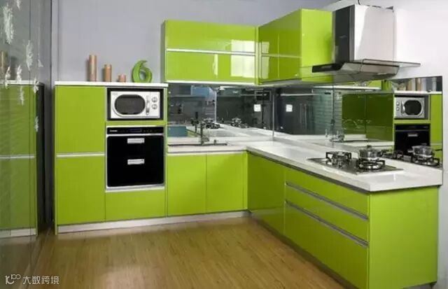 UV型门板与烤漆类似,主要是油漆与工艺不同。UV漆就是紫外光固化漆,这种漆固化不像烤漆一样要经过烘房高温烘烤,而是紫外光线固化。其亮光表面处理, 色泽鲜艳,耐磨,不变色,易清理。UV板成本较高,对机械设备和工艺技术要求高,所以一般橱柜企业采用进整板,然后配铝封边的方法。