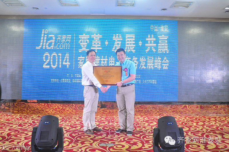 齐家网副总裁楼卿先生向淮安站总经理杨锁平先生授牌