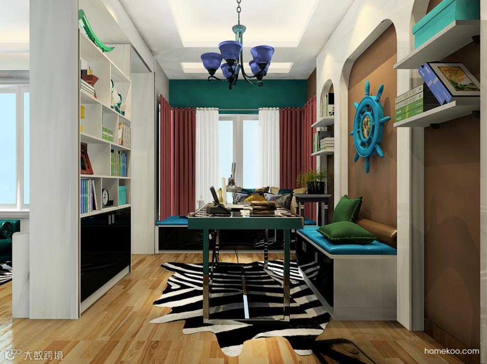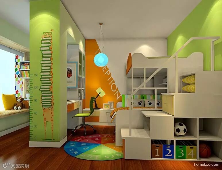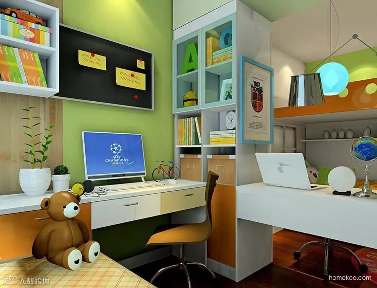 通过柱子与柜体书桌的隔断,在窗台处开辟出另一个读书区。能让两个孩子都有独立的学习空间。