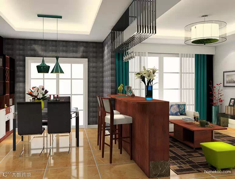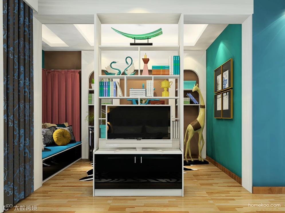 通过定制电视柜,将客厅的沙发区和用餐区分隔开。