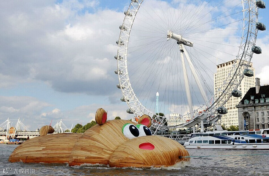 这次大黄鸭的设计师Florentijn Hofman派来伦敦的不是大黄鸭,而是..... 大河马!