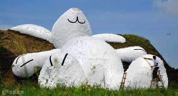 9月2日,由荷兰“大黄鸭”之父霍夫曼打造的大型装置艺术作品“月兔”亮相台湾桃园大园乡海军基地,迎接中国传统中秋佳节。