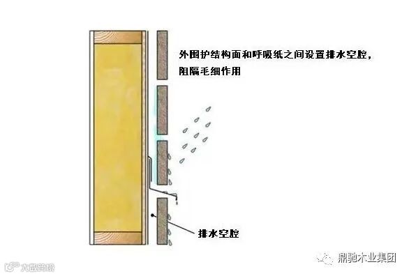 偏转装置主要是通过屋面挑檐、雨篷、泛水板等构造措施,可拦截建筑物外部的雪、雨和其他湿气源。