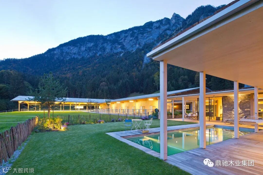 在田园诗般的蒂罗尔山脉中心,一个私人马术中心完工,包括一个马厩翼、一个室内骑马场和一座私人住宅。这些建筑的特点是简洁、线性的建筑和出色的功能,施工共使用了 350 m³ 胶合木和 300 m³ CLT。