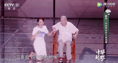 她跪在台上和老先生谈笑风生,却给观众一种恰到好处的舒服自然和如沐春风。