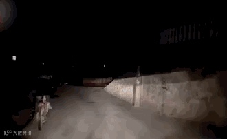 一个小学生,夜间骑自行车回家,身后的司机为他一路照明。