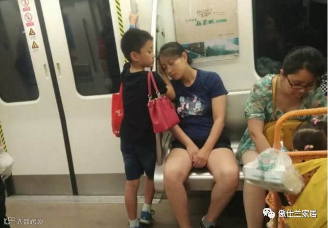 直到地铁到站前,这位妈妈一直保持着这个动作。
