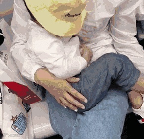 妈妈怕孩子踢到别人,也怕孩子的鞋子弄脏别人的衣服,就一直用手捧着鞋子。