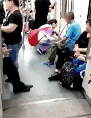 地铁上,孩子把爆米花洒在了地铁车厢里。
