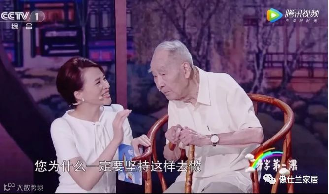 在一档综艺节目中,董卿为了照顾轮椅上96岁高龄的嘉宾,许渊冲老先生,她很自然的选择了跪地采访。