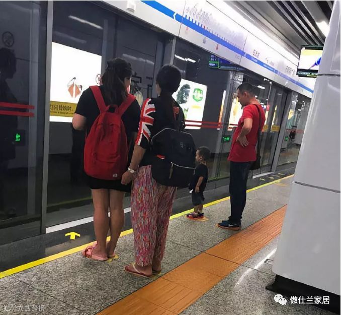 在等地铁时,一个宝宝问爸爸妈妈还有外婆(奶奶),脚下踩的脚印是干嘛的。