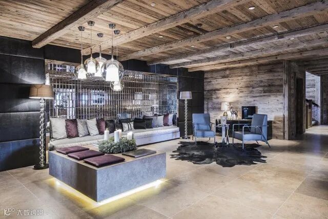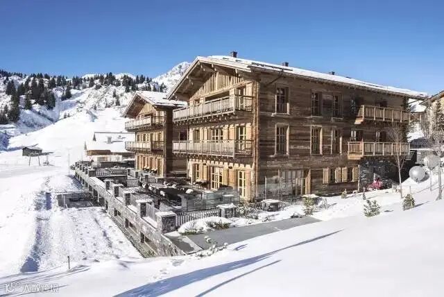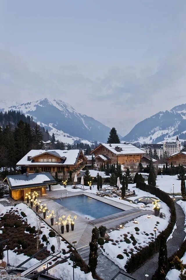 The Alpina Gstaad是这两年在欧洲滑雪界中声名鹊起的酒店,长型木造的建筑很有气势,不上漆色的原木质感间以白色粉刷石墙,与旁边的树木白雪浑然一体。前面一方温水泳池在冰雪酷寒中徐徐地冒着热气。如果从附近的至高点看下去,酒店建筑恰恰略低矮于周围的森林大树,完全融在瑞士这一片天然的高山景色中。