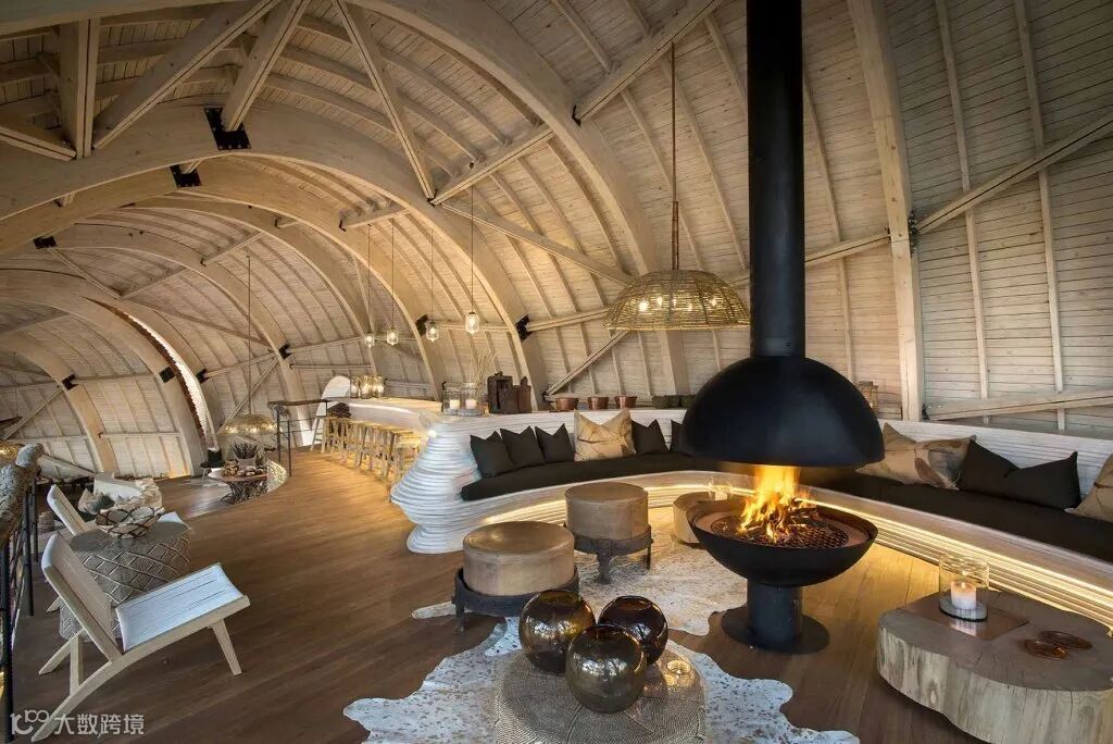 为创造出“置身丛林”的感觉,每个套房都是抬升式的,它们被精心布置在环境之中,由一系列内部和外部空间组成,包括休息区、私人户外餐厅和私人泳池,每个房间都配备有取暖炉以保证寒冷季节有暖可供。