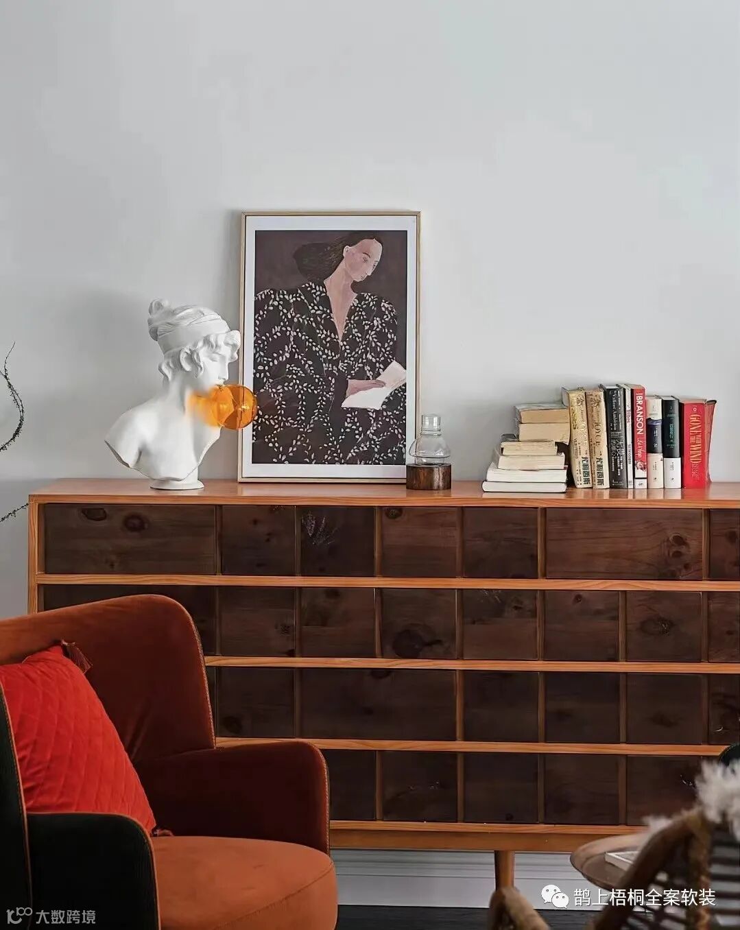 书籍、装饰画、香氛、石膏雕塑一切摆件都存在的自然,合理,又独具风味。