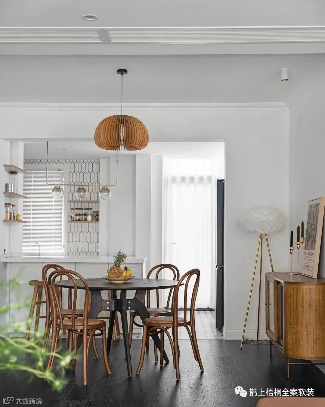 再看看餐厅,圆桌的采用更加容易营造一种温馨、欢乐的用餐气氛。