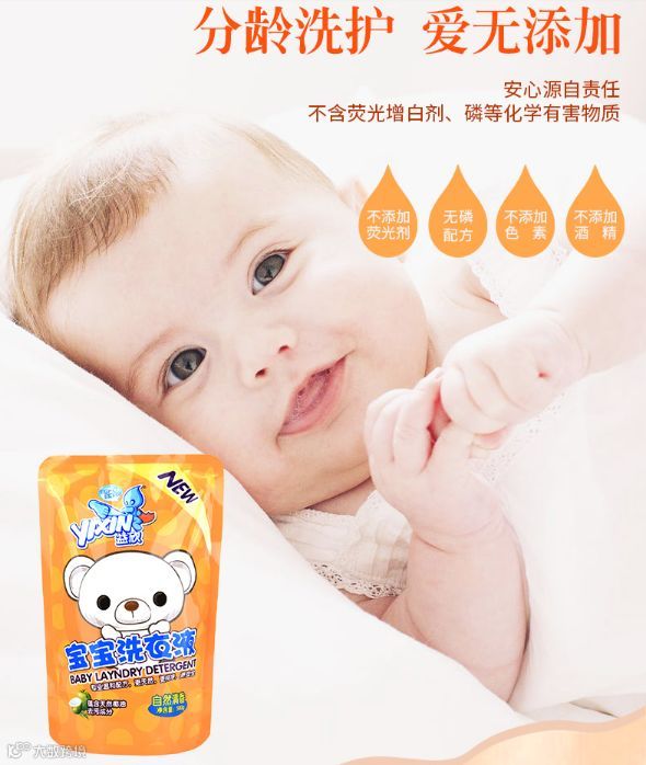 针对0-6岁宝宝肌肤特点专业设计,独特复配工艺,有效去除各种污渍,且深入纤维洁净因子,能迅速瓦解各种顽渍。