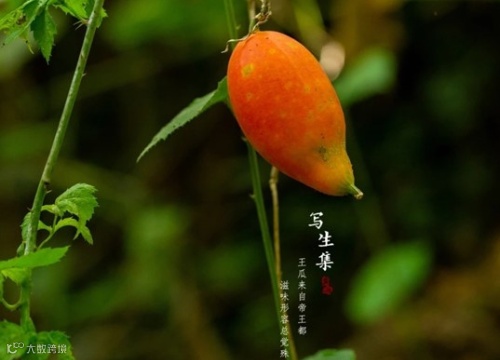 王瓜是华北特产的药用爬藤植物,在立夏时节快速攀爬生长,到了六七月,还会结出红色的果实。
