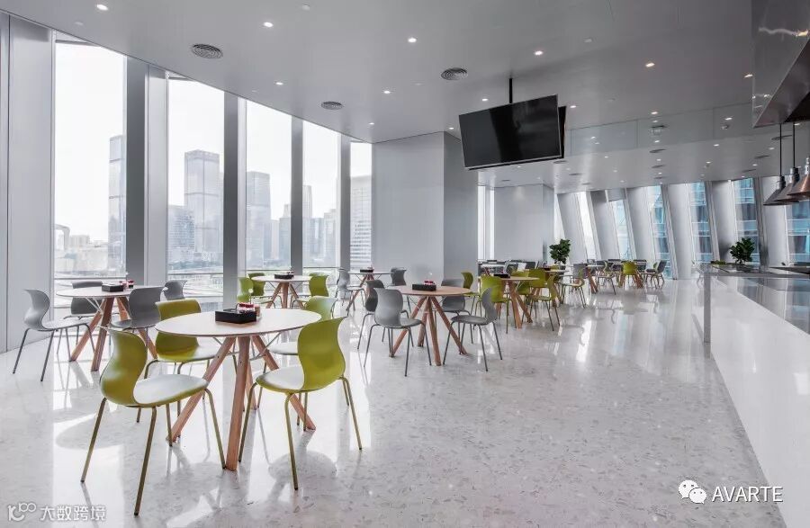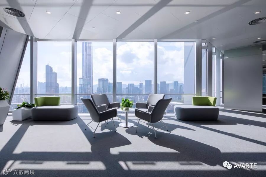 各楼层视野广阔,拥有大面积空间做为会议室。休闲区家具注重人体工程学和美学发展,致力于打造现代公共休闲空间。