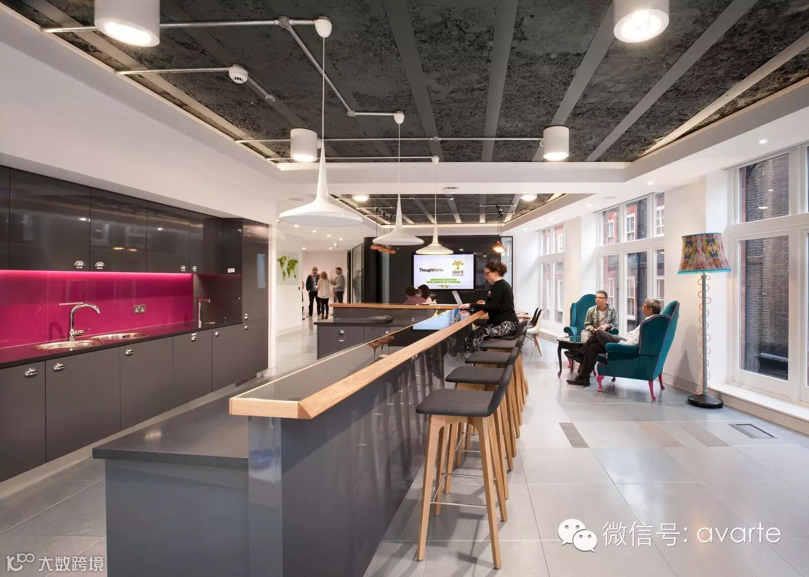 2015年上半年,超过40年建筑和设计历史的英国公司——Morgan Lovell收获了两项大奖,由他们设计的Splunk办公室被《今日管理》(Man-agement Today)杂志选为“英国最酷的六大公司”之一;而另一个项目ThoughtWorks则被2015年《调酒术》杂志(Mixology)选为“中小型商业室内设计年度奖”。两间公司的总部都设在美国,办公室却风格迥异,前者洋溢着浓浓的英伦街头风,而后者则是色彩鲜明的流动办公室。