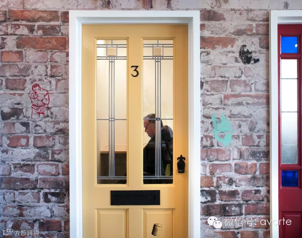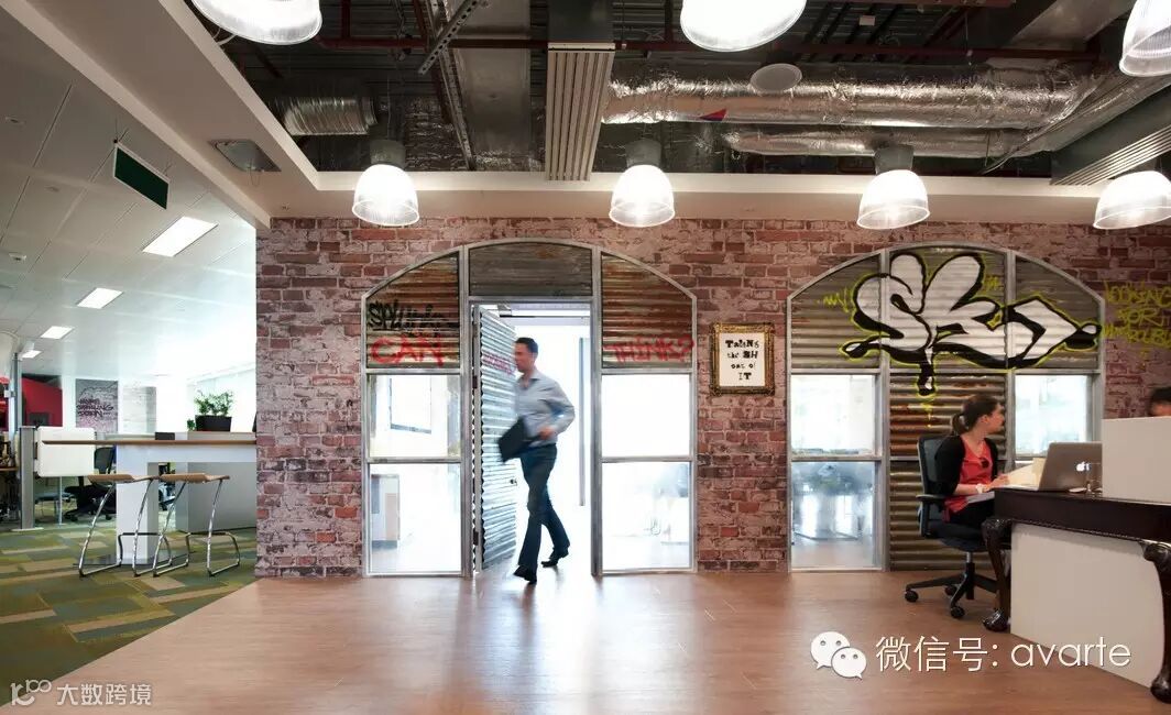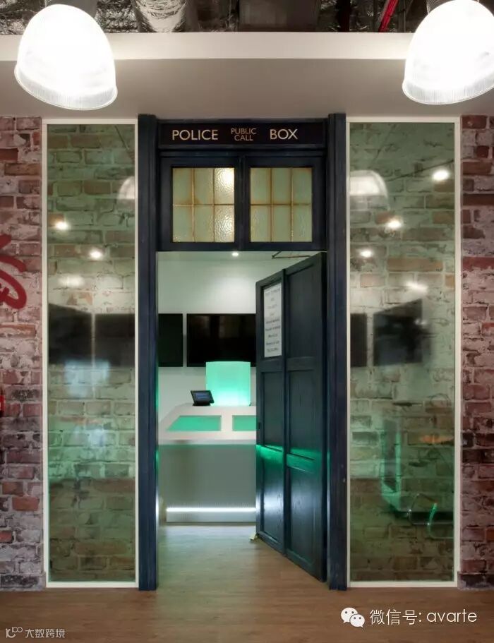 除了开放的公共办公区之外,Splunk还辟出了四间小会议室和电话隔间,四间房无一相同,有着发黄玻璃和墨绿色木门的警察岗亭(Police Box)把你带回五十年前的伦敦,有的干脆就是打造成一间旧仓库的模样,“铁皮门”上的红色涂鸦张扬而醒目。